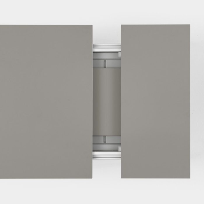 Il piano è in Fenix-NTM, materiale tecnologico con finitura opaca antiriflesso, piacevole al tatto e altamente resistente a graffi, calore, abrasioni e macchie.