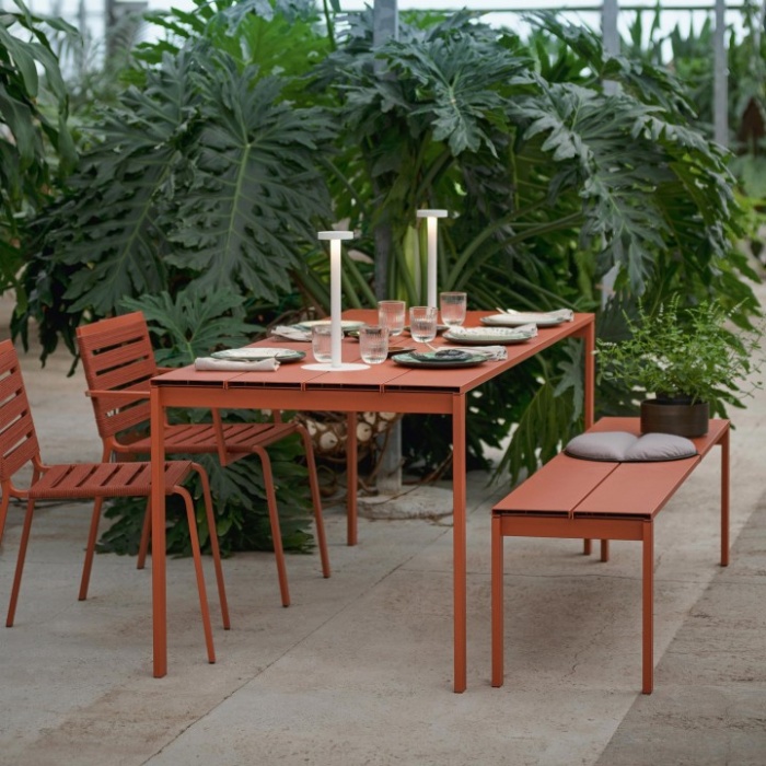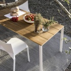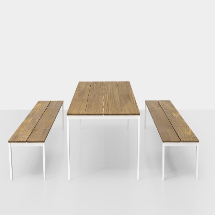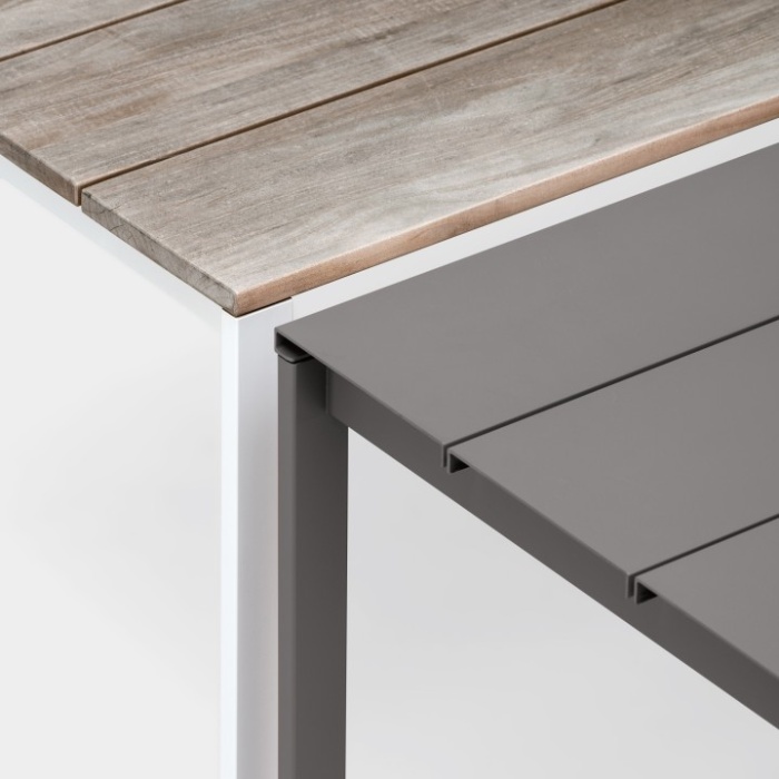La collezione include tavoli, tavolini, panche e banconi anche per l’outdoor, arricchendo ulteriormente l'offerta con piani in legno di Teak certificato FSC, trattabile o naturale.