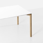Disponibile anche in versione con gambe in legno e piano in laminato Pure-white o Fenix-NTM, unisce artigianalità e innovazione.