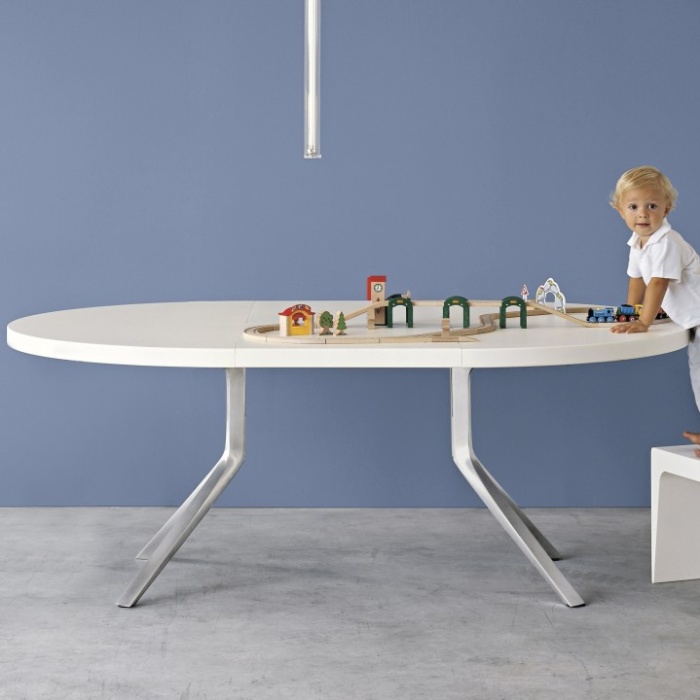 Nato nel 2006 come tavolo allungabile dal piano tondo che si trasforma in ellissoidale, si distingue per l’eccellenza tecnica e per l’estetica curata in ogni dettaglio, sia in versione chiusa che aperta.