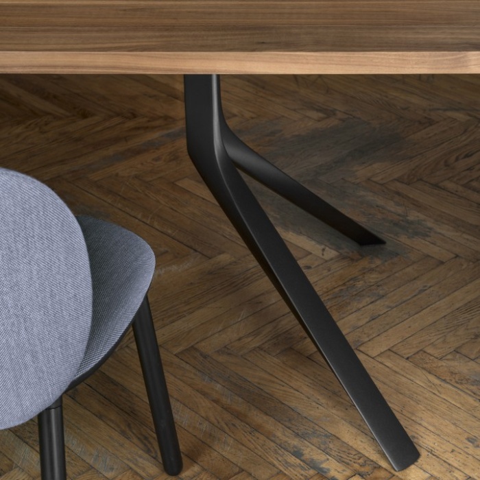 Le gambe in fusione di alluminio, disponibili con finitura spazzolata o verniciata, offrono stabilità e carattere.