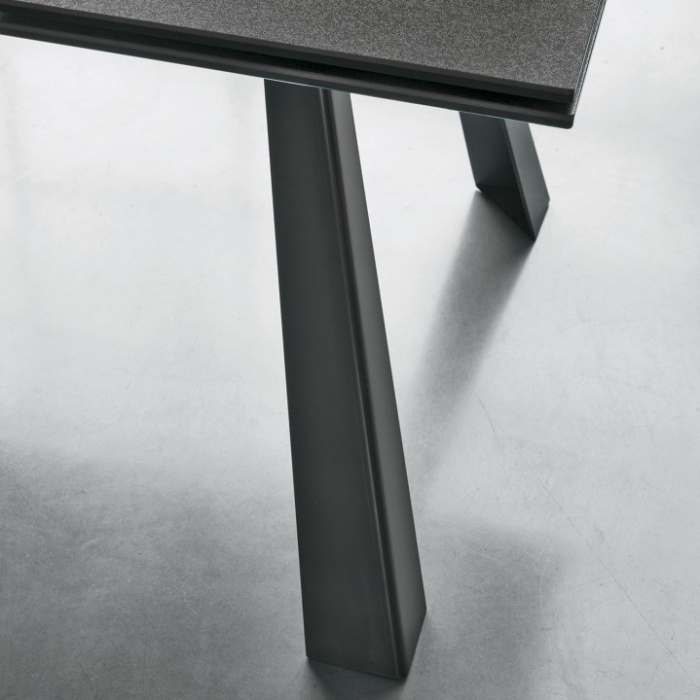 Tavolo allungabile da pranzo/cucina mod. Ponente marchio Target Point. Struttura in metallo verniciato o spazzolato con piano/allunghe laterali in gres porcellanato o vetro temperato. Design moderno che si distingue per le linee rette e contemporanee delle quattro gambe rastremate e per il piano ultrasottile che lo rendono un tavolo molto funzionale e pratico.