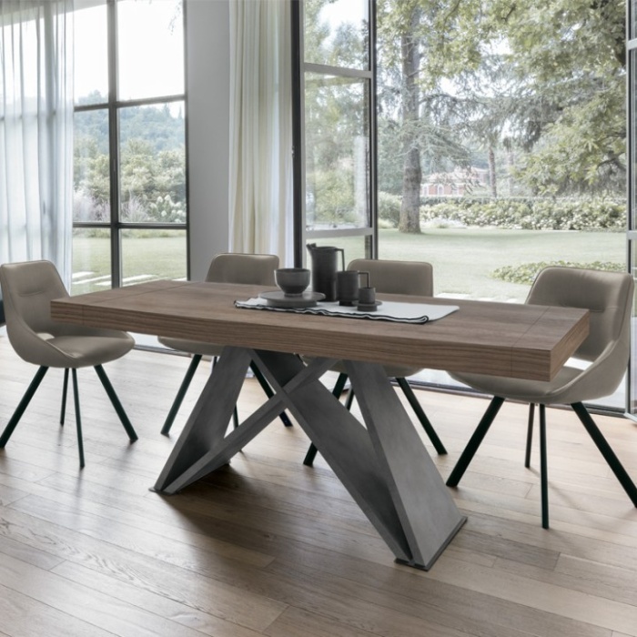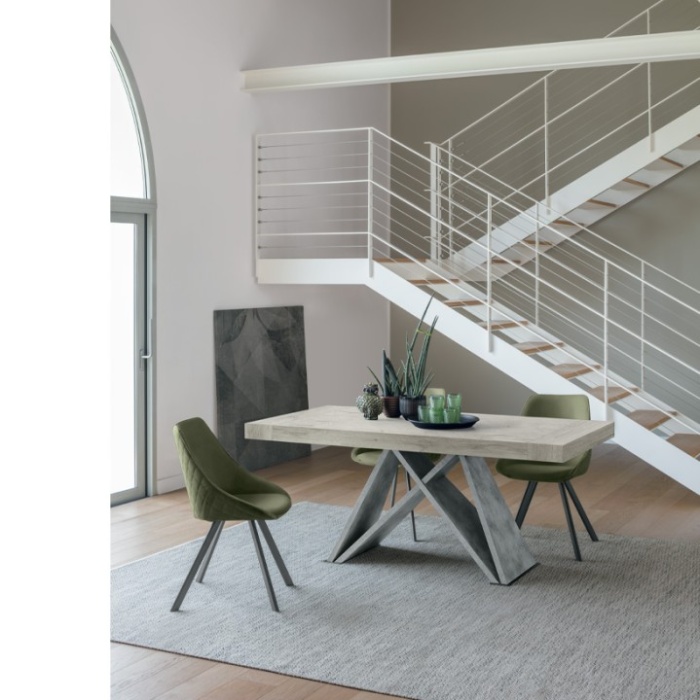 Il tavolo di design allungabile mod. Sigma è una novità della collezione Silver marchio Target Point. Un complemento d'arredo dal design ricercato che si adatta ad ambienti moderni e raffinati che si distingue per la scelta dei materiali di alta qualità che conferiscono un aspetto moderno e ricercato. Il particolare spessore del piano rettangolare ed il basamento composto da 4 segmenti inclinati ed incrociati lo renderanno il protagonista assoluto del tuo arredo. Sigma è un complemento d'arredo che non passa inosservato, dona stile ed eleganza a qualsiasi arredamento, dal classico al contemporaneo. Un tavolo allungabile che grazie alle due allunghe laterali riesce a soddisfare ogni esigenza di spazio ed accogliere comodamente fino a 10/12 commensali.