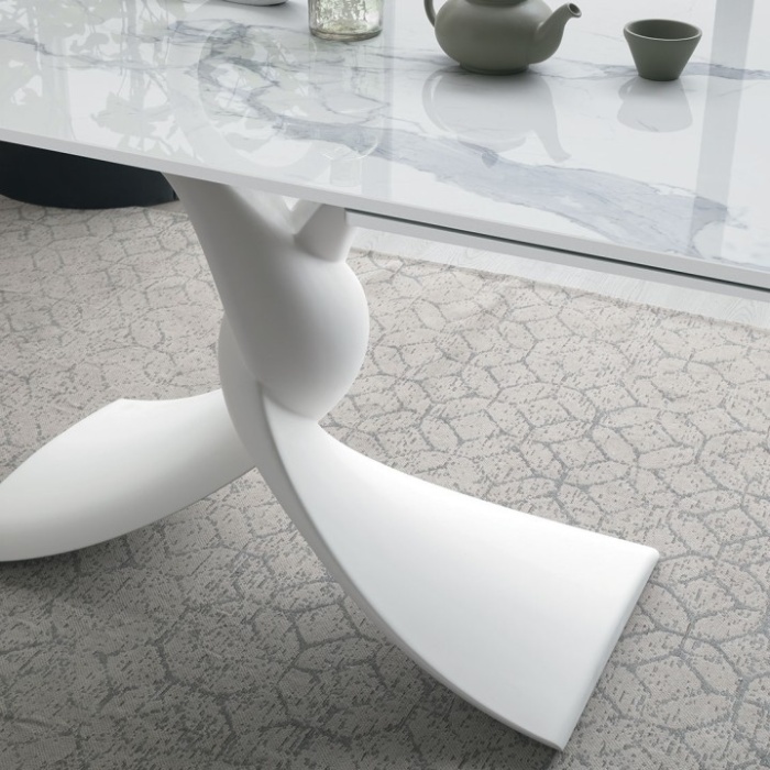 Il piano ultrasottile in Gres, un materiale impermeabile e duraturo nel tempo, rende questo tavolo pratico e funzionale che saprà resistere all'usura delle attività domestiche, disponibile nelle nuove finiture opache fiordibosco, sabbia e calacatta oppure lucide sempre coordinate alla struttura, dai toni del bianco effetto marmo fino a quelli più caldi del sabbia (alabastro) o del marrone più intenso.