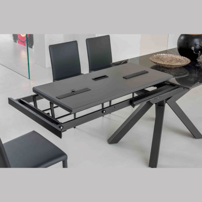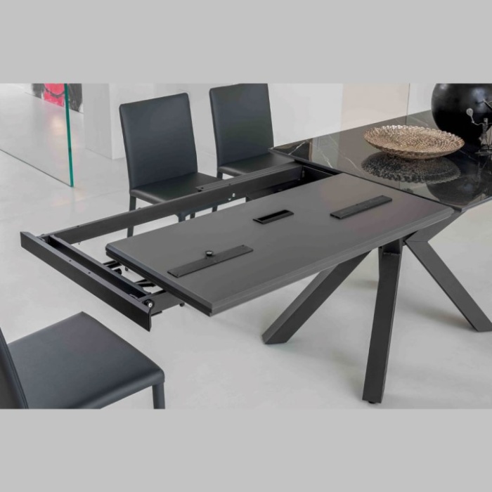 La caratteristica distintiva del tavolo Atlantis è la sua prolunga interna a libro, che si nasconde discretamente sotto il piano principale. Quando hai bisogno di più spazio per ospitare ospiti o organizzare cene speciali, la prolunga può essere tirata fuori facilmente, trasformando il tavolo da una dimensione compatta a una tavolata accogliente.