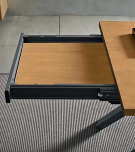 Il meccanismo estensibile Sincronizzato è in alluminio e sempre in finitura antracite, anche nel caso di cambio colore del basamento.