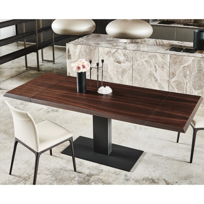 La famiglia di tavoli moderni Elvis rappresenta la perfetta fusione tra design contemporaneo, minimalismo elegante e funzionalità senza tempo, donando alla sala da pranzo moderna un’eleganza sobria ma inconfondibile. La sua base centrale in acciaio, dal profilo pulito e rigoroso, sostiene con leggerezza e solidità il piano, disponibile in diverse versioni pregiate per adattarsi a ogni stile abitativo.