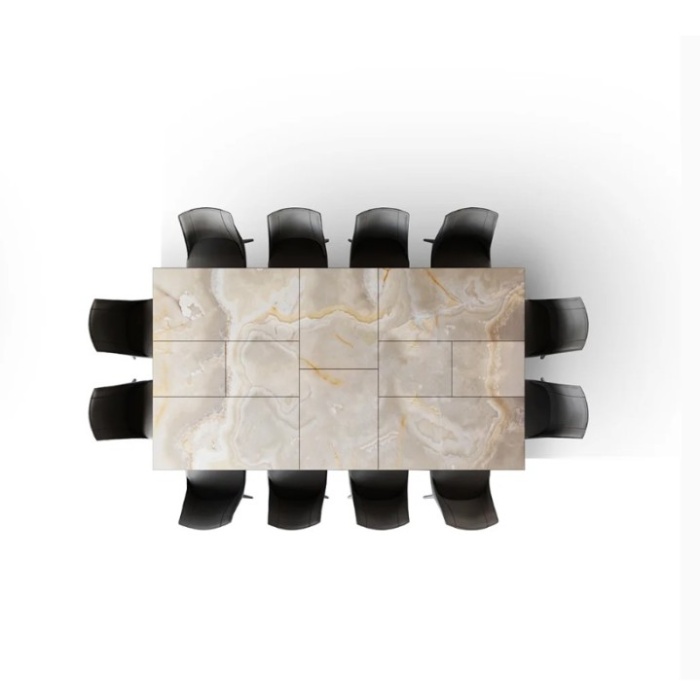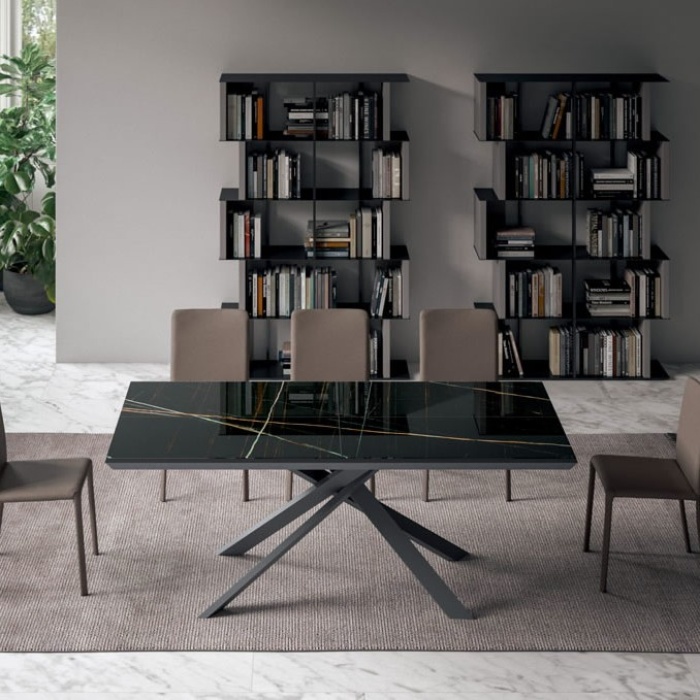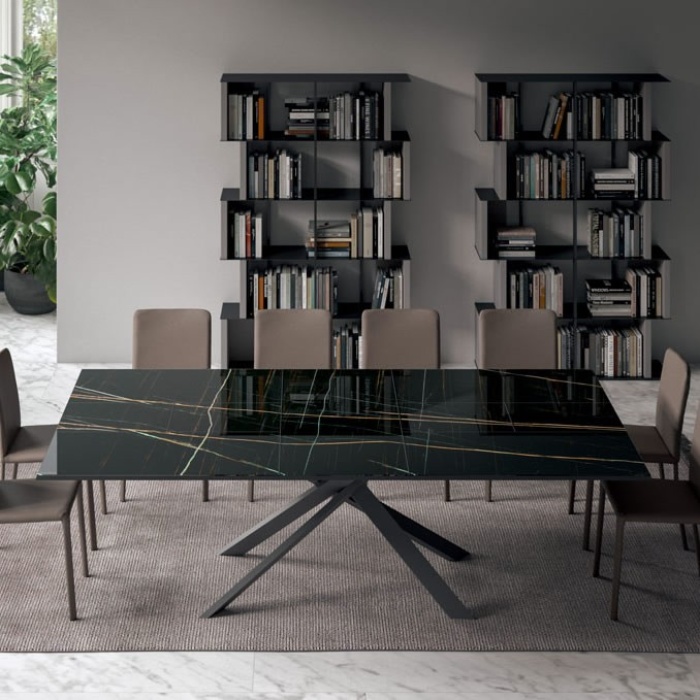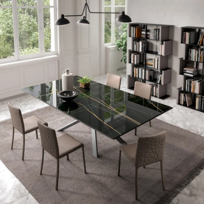 - Marble glass, raffinato e luminoso, capace di dare carattere a qualsiasi sala da pranzo. In questa versione, le venature risultano continue anche a configurazione aperta.