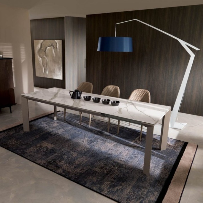 Il cuore del tavolo Metrò è il suo meccanismo di allungamento, intuitivo e semplice da usare. All’interno della struttura è integrata una prolunga a scomparsa, perfettamente coordinata con il piano del tavolo. Due delle quattro gambe sono dotate di ruote invisibili, che rendono l’apertura estremamente scorrevole e gestibile anche da una sola persona.