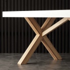 Caratterizzato da un piano in legno impiallacciato frassino laccato bianco poro aperto e una base in massello di frassino olivato tinto naturale, offre un design raffinato e una struttura solida.