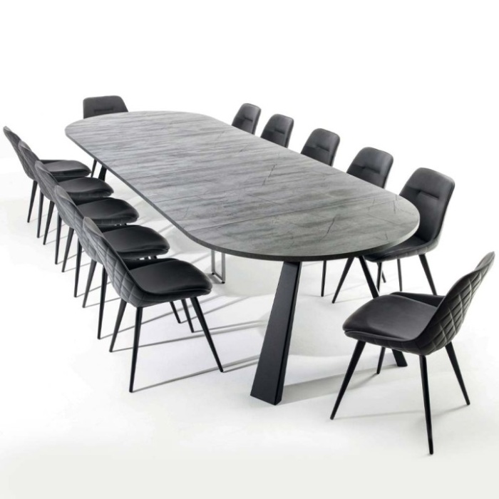 Dotato di ben 5 allunghe da 50 cm ciascuna, il tavolo si estende facilmente fino a raggiungere una lunghezza di 370 cm, permettendo di ospitare comodamente fino a 12 persone.