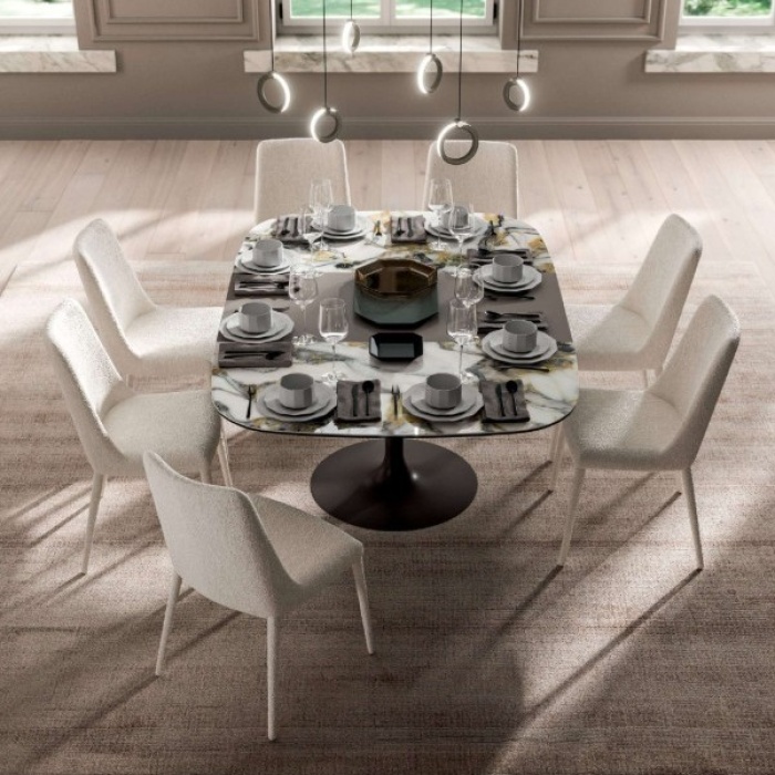 Bravo di Ozzio è un tavolo da pranzo allungabile che unisce funzionalità ed eleganza. Caratterizzato da una forma sagomata, è ideale per arredare ambienti contemporanei.