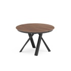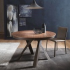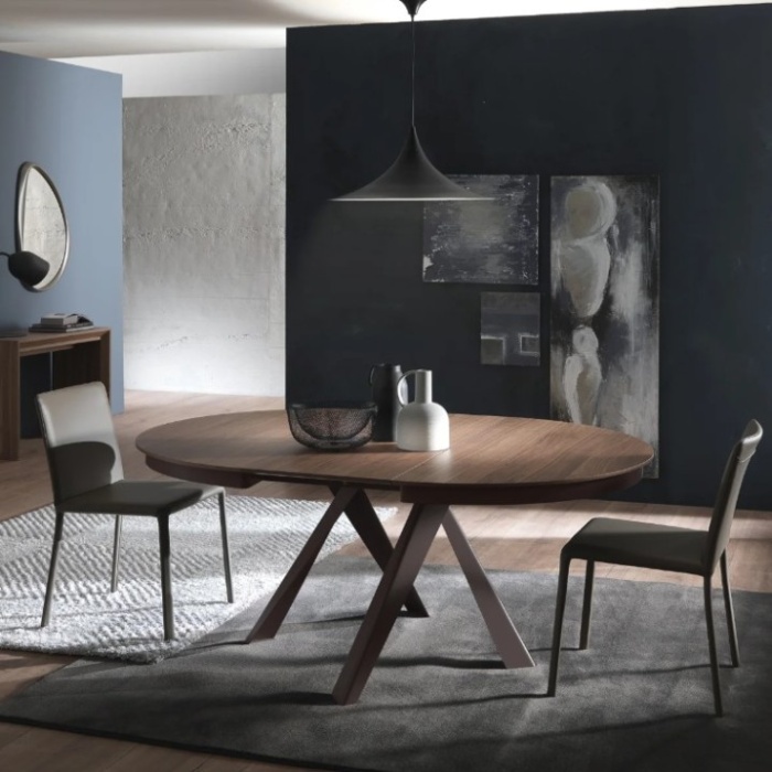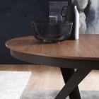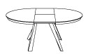 Il piano è circolare nella configurazione chiusa, offrendo una presenza estetica pulita e compatta. Una volta aperto, grazie a una pratica allunga centrale in legno, il tavoloraggiunge una lunghezza di 165 cm. Questa configurazione permette di passare da una soluzione intima a una capacità fino a 8 posti a sedere.
