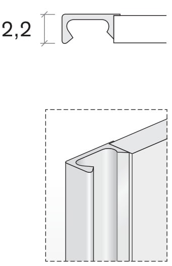 Ante spessore 2,2 cm con maniglia a gola verticale in alluminio verniciato.