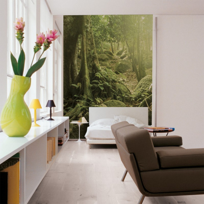 Wallpaper dalla texture che ha l’aspetto di un tessuto. Antiriflesso, con grande profondità cromatica, soprattutto nei colori sgargianti.