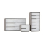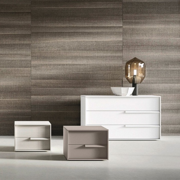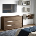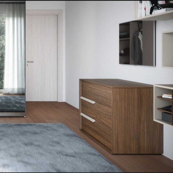 - Fondo: pannello in nobilitato sp. 0,6 cm in finitura tessuto. Comò con fondo rinforzato.