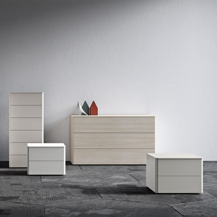 - Fondo: pannello in nobilitato sp. 0,6 cm in finitura tessuto. Comò con fondo rinforzato.