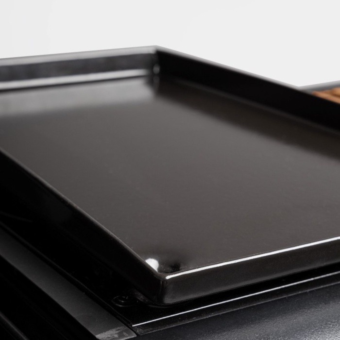 Il piano laterale con piastra di cottura è ideale per contorni, verdure o preparazioni extra.