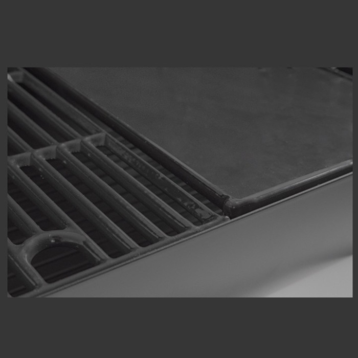 La configurazione è completa: comprende griglia + piastra di cottura, entrambe realizzate in ghisa smaltata, un materiale resistente e ottimo per mantenere e distribuire il calore in modo uniforme.