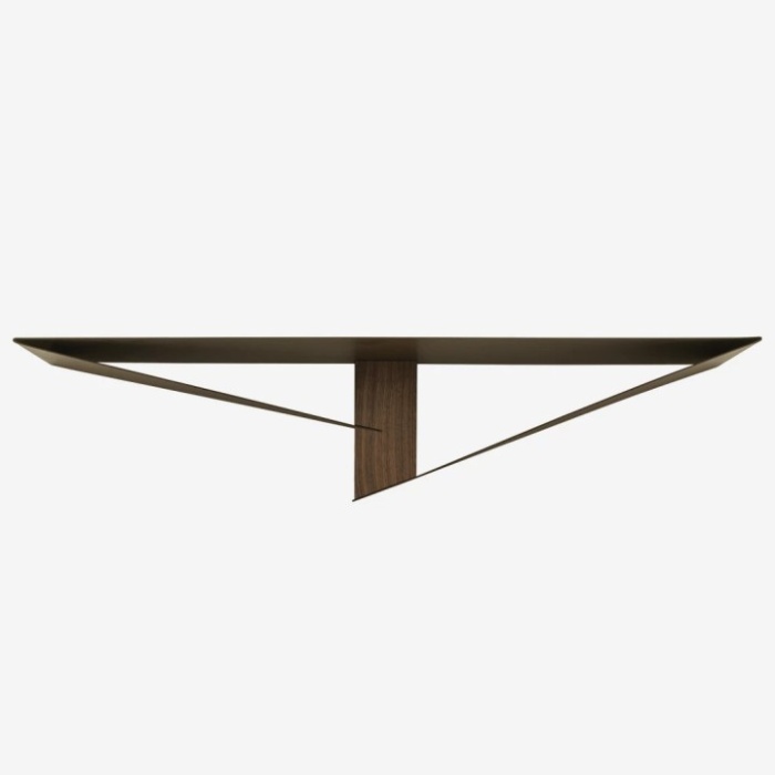 Due ali di metallo curvato si incontrano in un inserto in legno, dando vita a una composizione scultorea che decora la parete con leggerezza e armonia. La consolle e la mensola Albatros si distinguono per il loro design raffinato e la capacità di adattarsi con versatilità a diversi ambienti, dall’ingresso al living. La gamma di colorazioni disponibili – tra cui bronzo pietra, verniciato bianco, rosa cipria e grigio caldo – consente di personalizzare ogni pezzo, donandogli un’identità visiva unica. Ogni finitura racconta una sfumatura diversa di stile, offrendo un perfetto equilibrio tra matericità e leggerezza formale.