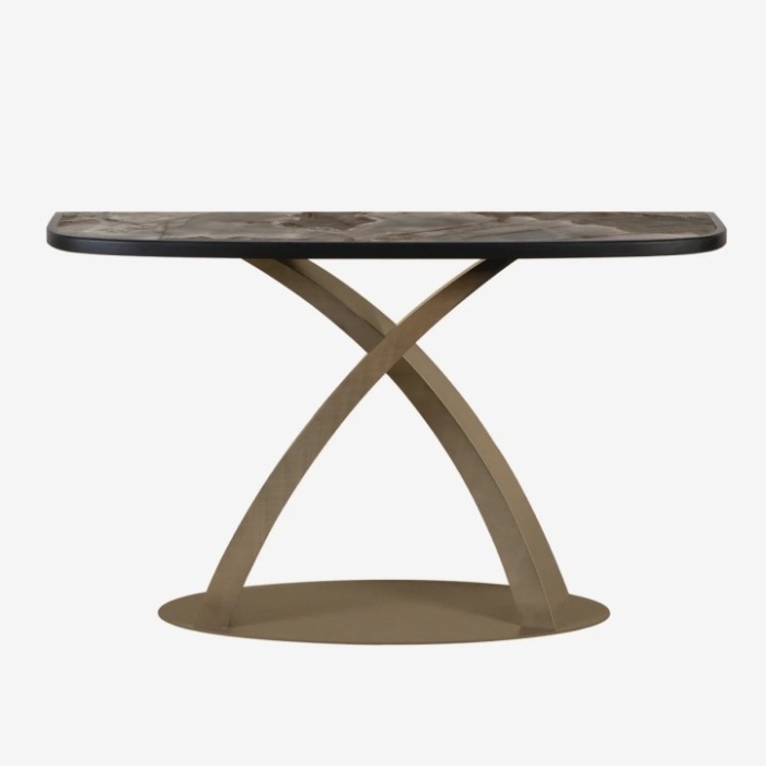 La consolle Eliseo élite rappresenta l’evoluzione raffinata del modello originale, arricchita da un esclusivo ring in legno massello che incornicia e valorizza il piano. Questa cornice, realizzata con cura artigianale, esalta le finiture in porcellanato disponibili, creando un elegante contrasto materico tra la naturalezza calda del legno e la superficie liscia e sofisticata del top. La struttura mantiene la caratteristica base in acciaio dalle linee pulite e armoniose, garantendo stabilità e leggerezza visiva, mentre le proporzioni equilibrate la rendono perfetta per arredare ingressi, zone giorno o ambienti di rappresentanza.