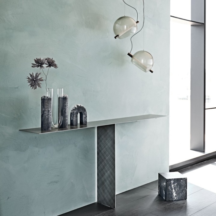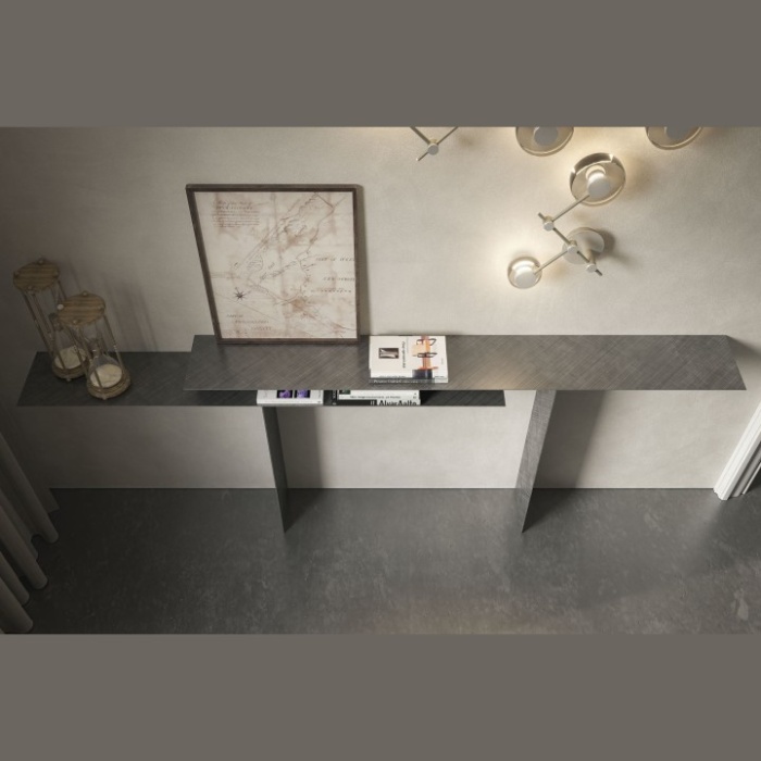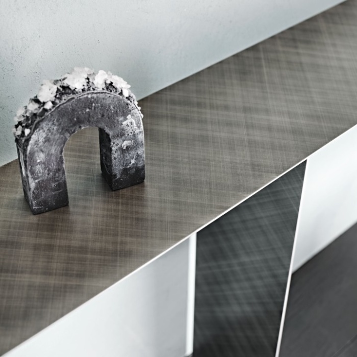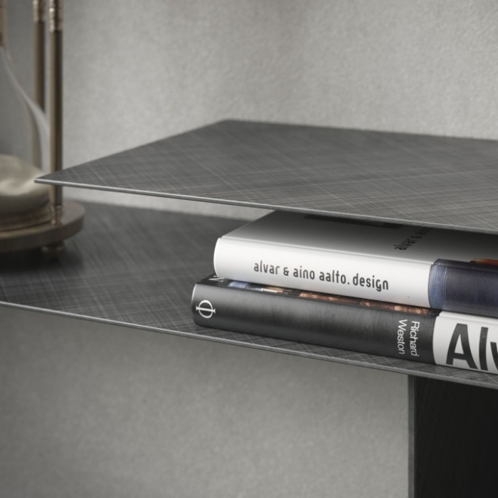 Consolle in acciaio Brushed Bronze o Brushed Grey. Fissaggio a parete necessario.