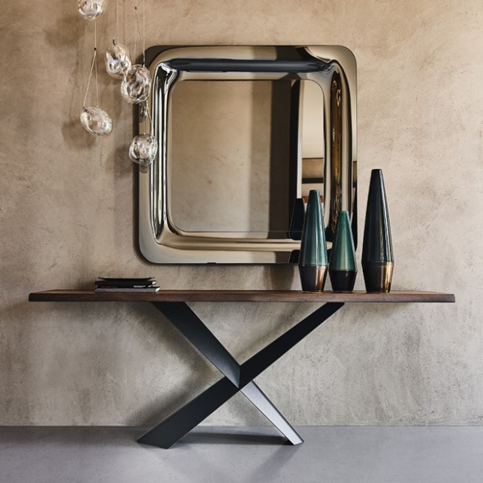 La prima è valorizzata dall’elegante cornice Brushed Bronze o Brushed Grey. Mentre la seconda è un tavolo consolle allungabile che, grazie ad un ingegnoso meccanismo di prolunghe e supporti, raggiunge 2 metri di lunghezza, trasformandosi in un magnifico tavolo pronto ad accogliere gli ospiti.