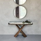 La prima è valorizzata dall’elegante cornice Brushed Bronze o Brushed Grey. Mentre la seconda è un tavolo consolle allungabile che, grazie ad un ingegnoso meccanismo di prolunghe e supporti, raggiunge 2 metri di lunghezza, trasformandosi in un magnifico tavolo pronto ad accogliere gli ospiti.