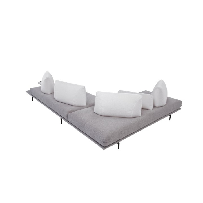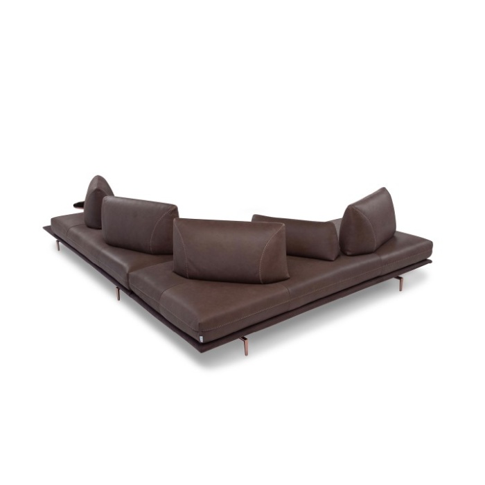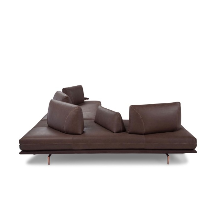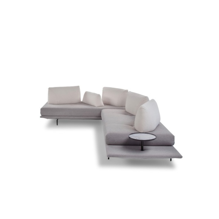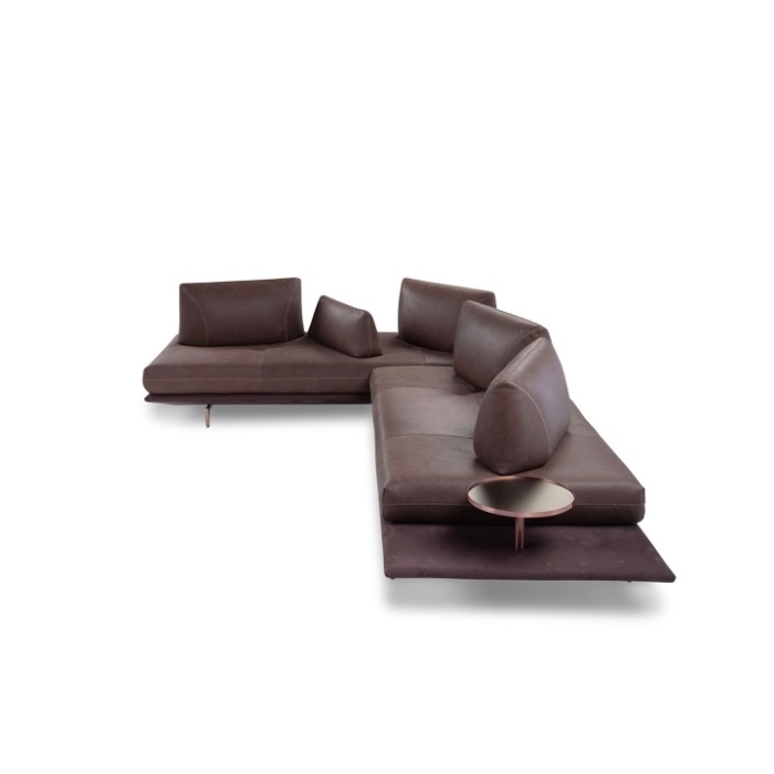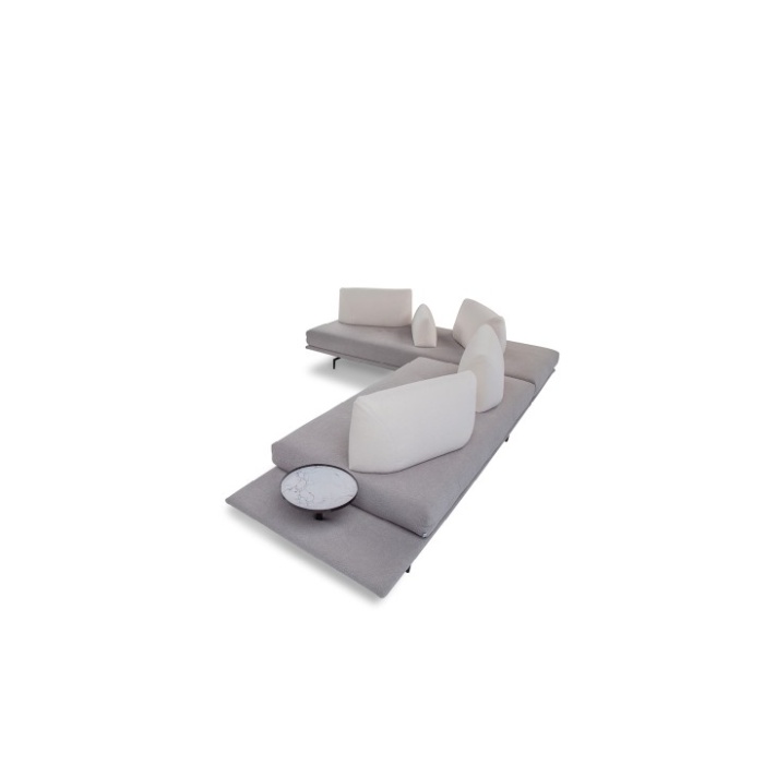• Componenti: le versioni "terminali" sono dotate di prolungamento della base del divano, utile come piano di appoggio. Le versioni "terminale tavolino" sono inoltre corredate di elemento tavolino in metallo finitura graubraun. In alternativa, su richiesta e con supplemento di prezzo, è possibile scegliere tra le finiture: satinato, titanio e rame. Piano tavolino effetto marmo o, su richiesta e con supplemento di prezzo, in vetro finitura bronzo.
