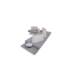 La base, che caratterizza l’intera collezione, rappresenta il vassoio su cui poggia la seduta.