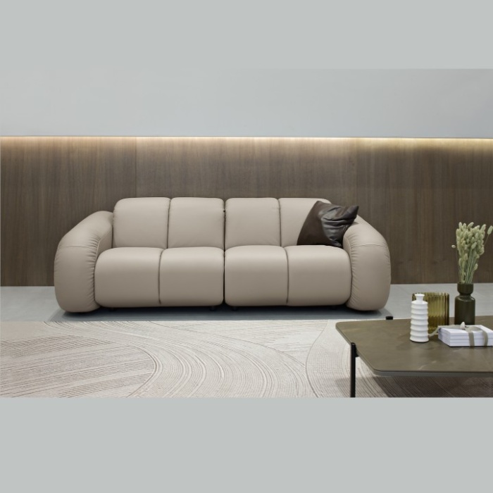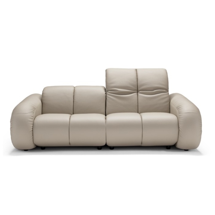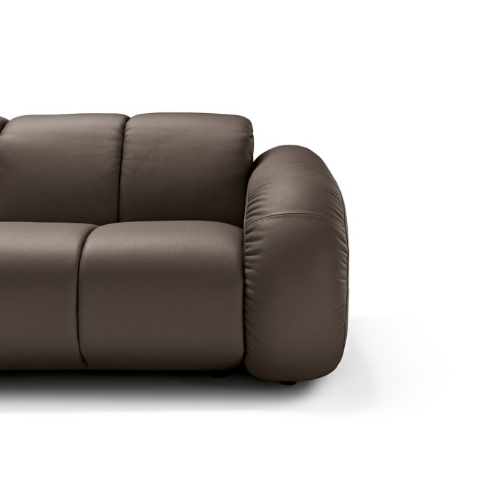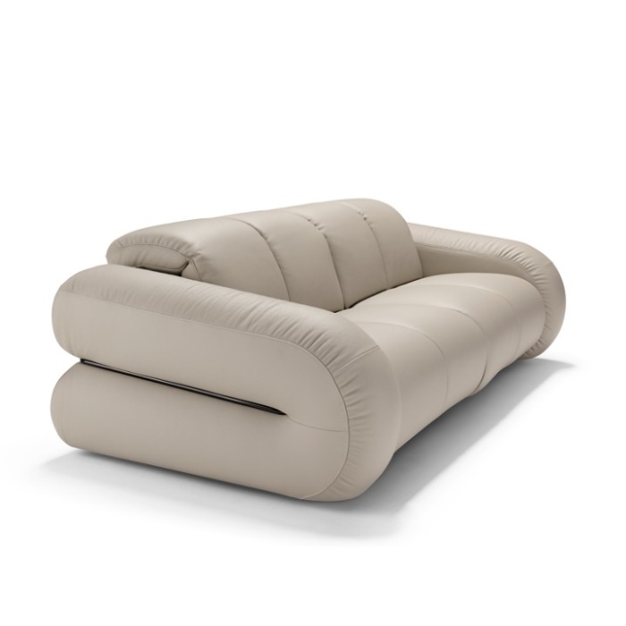 Questo modello, disponibile a due o tre posti, si distingue per le sue forme bombate e i volumi generosi, capaci di creare un senso immediato di accoglienza e morbidezza.