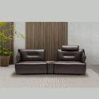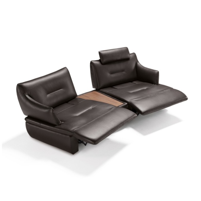 Ogni poltrona del divano Speciale è dotata di un doppio meccanismo recliner integrato, che permette di regolare simultaneamente pediera e spalliera con un unico gesto.