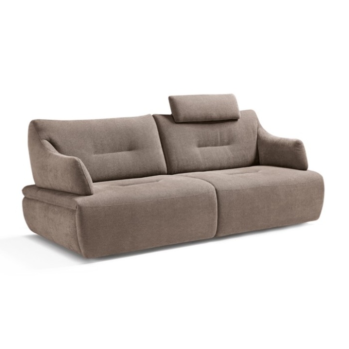 Le forme sono morbide e accoglienti, grazie ai braccioli avvolgenti e alle cuciture tirate, presenti sia nella seduta che nella spalliera, che aggiungono un tocco artigianale e raffinato al design.