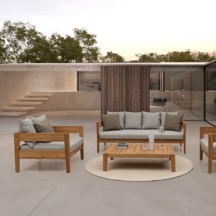 Nel tempo, gli olii naturali del legno possono affiorare in superficie, lasciando leggere macchie sui cuscini a contatto diretto, rendendo ogni pezzo ancora più autentico.