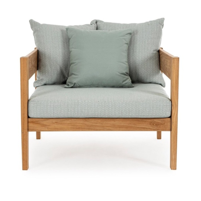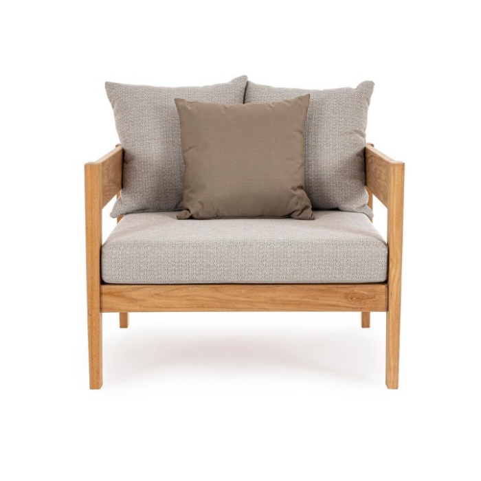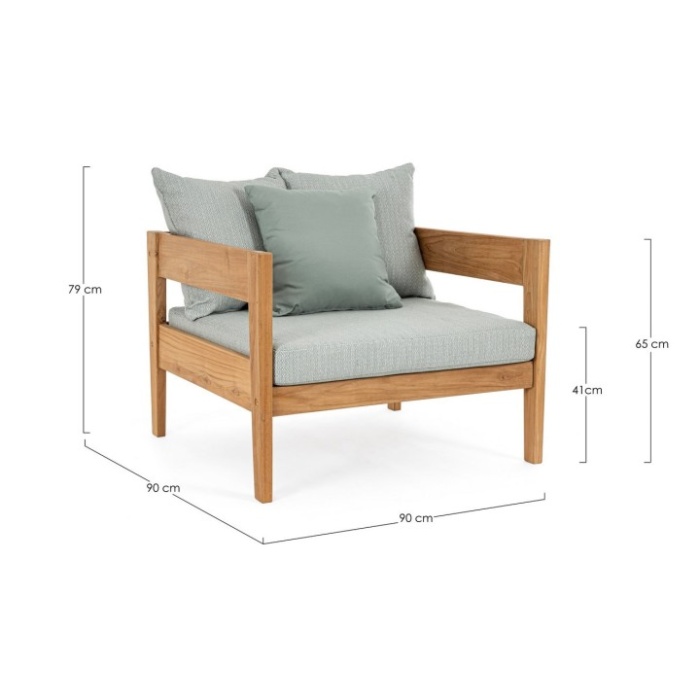 Realizzata in legno teak FSC 100%, proveniente da foreste gestite in modo sostenibile, questa poltrona è sinonimo di qualità, resistenza e rispetto per l’ambiente.