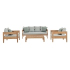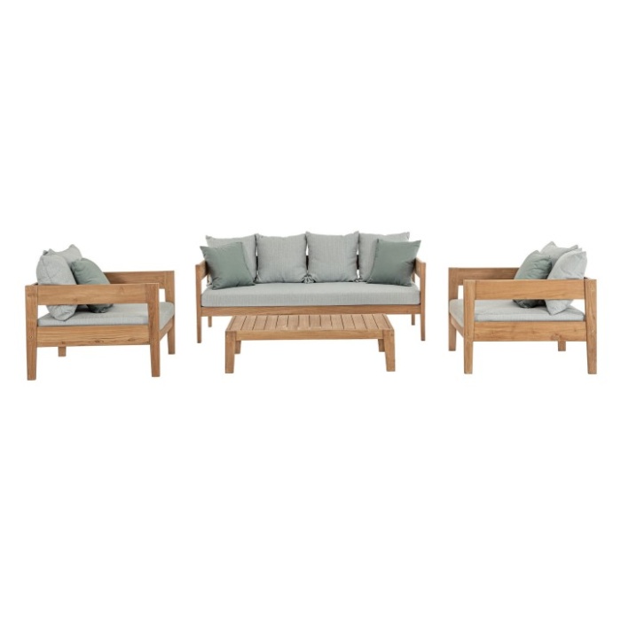I cuscini sono sfoderabili e realizzati in tessuto idrorepellente Sunproof Olefin (100% polipropilene), ideali per l’uso all’aperto e resistenti all’umidità e ai raggi UV.