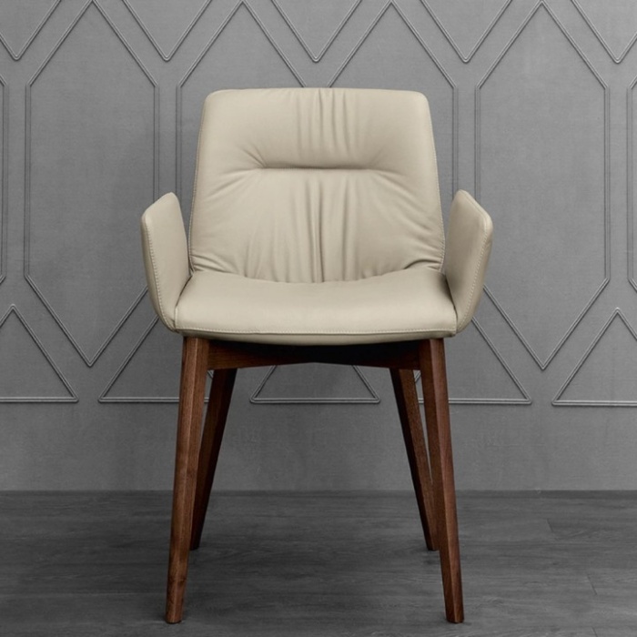 Alexia è la perfetta sintesi tra comfort assoluto e design raffinato, pensata per chi desidera un arredo capace di coniugare estetica e funzionalità. Disponibile nella versione sedia o poltroncina, si distingue per l’imbottitura generosa che avvolge il corpo, offrendo un’esperienza di seduta estremamente piacevole. La base, proposta sia in metallo che in legno, è completamente personalizzabile grazie alla vasta scelta di finiture e rivestimenti disponibili, tra cui tessuti, pelli e materiali tecnici.