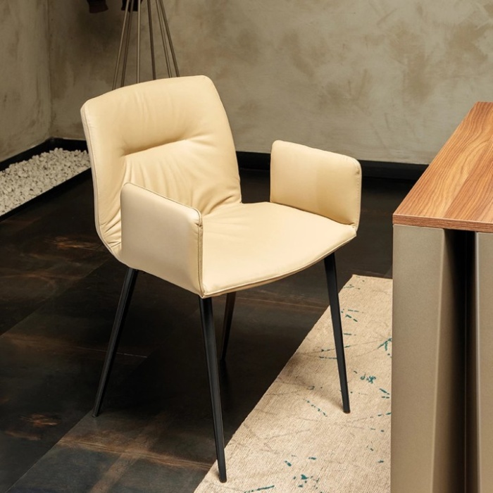 Alexia è la soluzione ideale per chi cerca il massimo del comfort senza rinunciare allo stile. Disponibile come sedia o poltroncina, offre un’imbottitura avvolgente e una base in metallo o legno, personalizzabile con un’ampia gamma di finiture e rivestimenti per adattarsi a qualsiasi ambiente.