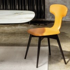 Eleganza e leggerezza formale si incontrano in Dauphine, una sedia monoscocca dal design sofisticato e dal profilo distintivo, ispirato alla sinuosa coda di un delfino. La base in legno massello, disponibile nelle finiture noce canaletto, frassino nero o rovere scuro, esalta la purezza delle linee, conferendo alla struttura una solidità nobile e al contempo discreta. Il rivestimento, disponibile in cuoio, pelle, tessuto o nelle combinazioni di pelle e tessuto, arricchisce la sedia di sfumature materiche e cromatiche che ne amplificano la versatilità stilistica. Dauphine si adatta con naturalezza ad ambienti living, dining o spazi professionali, offrendo una seduta confortevole e raffinata.