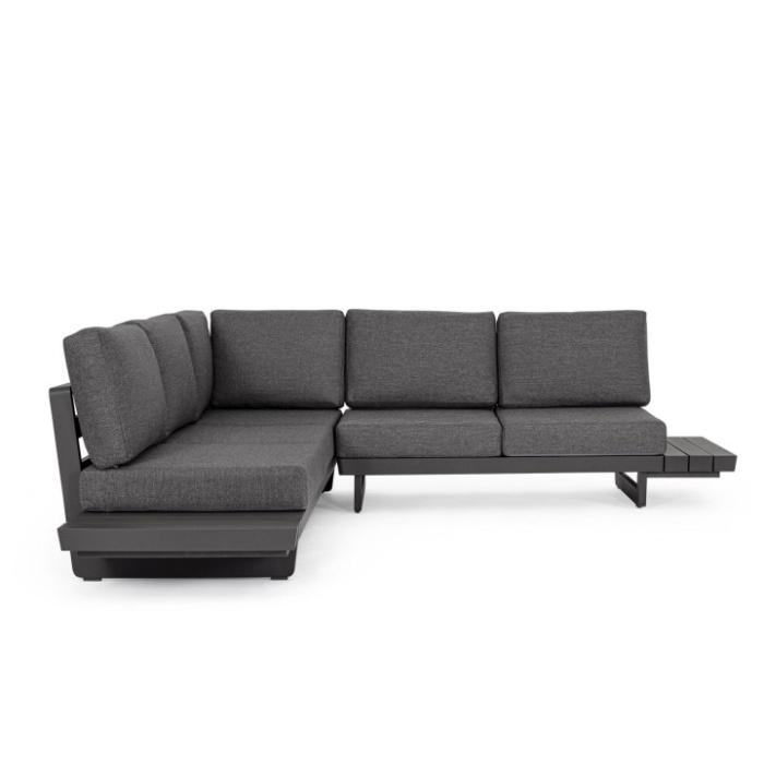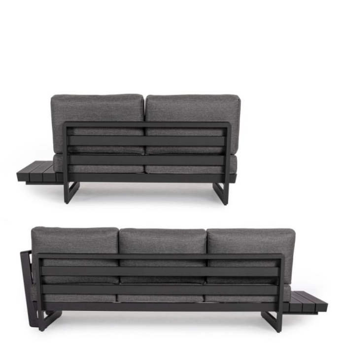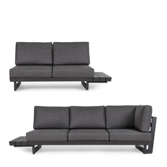 Set composto da: 2 elementi modulari con cuscini e tavolino integrato.