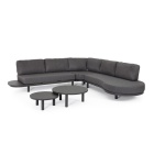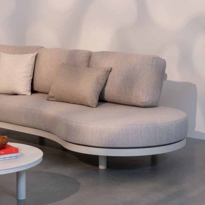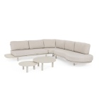 Il divano angolare modulare offre ampio spazio per rilassarsi, mentre i cuscini sfoderabili per seduta e schienale, realizzati in tessuto Olefin idrorepellente (100% polipropilene), garantiscono morbidezza, traspirabilità e facilità di manutenzione.