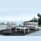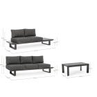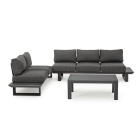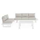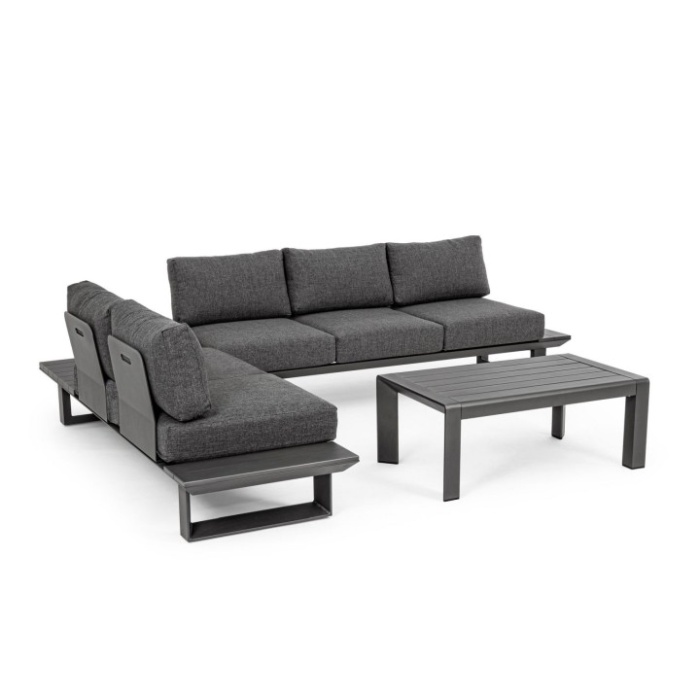 Il set è progettato per offrire una seduta angolare ampia e confortevole, perfetta per condividere momenti all’aperto in compagnia.