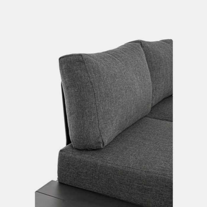 I cuscini sfoderabili sono rivestiti in tessuto Olefin (100% polipropilene), un materiale idrorepellente, facile da pulire e resistente all’umidità e ai raggi UV.