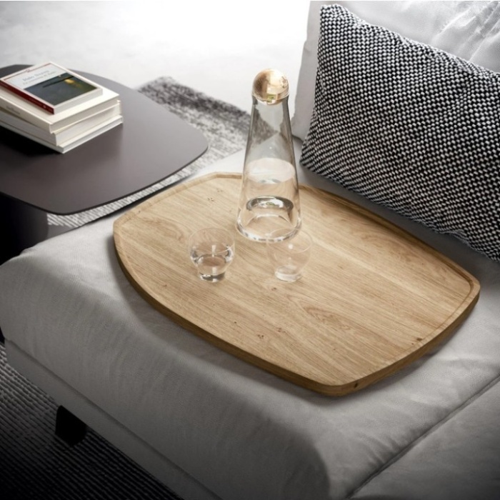 La possibilità di aggiungere un vassoio optional in legno, che amplia ulteriormente la funzionalità del tavolino, rende Zoom ancora più interessante e funzionale.Questo accessorio è dotato di un labbretto perimetrale, un bordo leggermente rialzato che aiuta a contenere oggetti ed evita cadute accidentali.Il vassoio può essere facilmente applicato o rimosso in base alle esigenze.