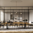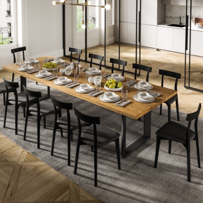 Per esaltare la maestosità del legno, consigliamo di abbinare il tavolo Bridge a sedie con rivestimenti in tessuto naturale o pelle, come il modello Ryana o Nancy. Grazie alla sua linea pulita, si inserisce perfettamente in open space moderni, ma anche in contesti più classici dove il legno massello funge da elemento di raccordo tra tradizione e contemporaneità.