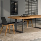 Il basamento "Bridge" non è solo un elemento estetico, ma garantisce una stabilità superiore grazie alla sezione generosa dei montanti in legno. Questa coerenza materica tra base e piano rende il tavolo visivamente armonioso. Oltre alla versione fissa, il modello Bridge è disponibile anche nella variante estensibile, dotata di pratiche prolunghe che permettono di allungare la superficie d'appoggio senza compromettere la stabilità o l'estetica del design originale.