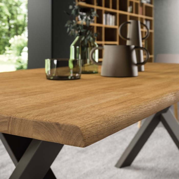 Lo spessore del piano (40 mm o 60 mm) conferisce una presenza scenica imponente, ulteriormente enfatizzata dai bordi laterali che possono essere scortecciati (per un effetto naturale e rustico) o dritti (per un look più pulito e minimale).