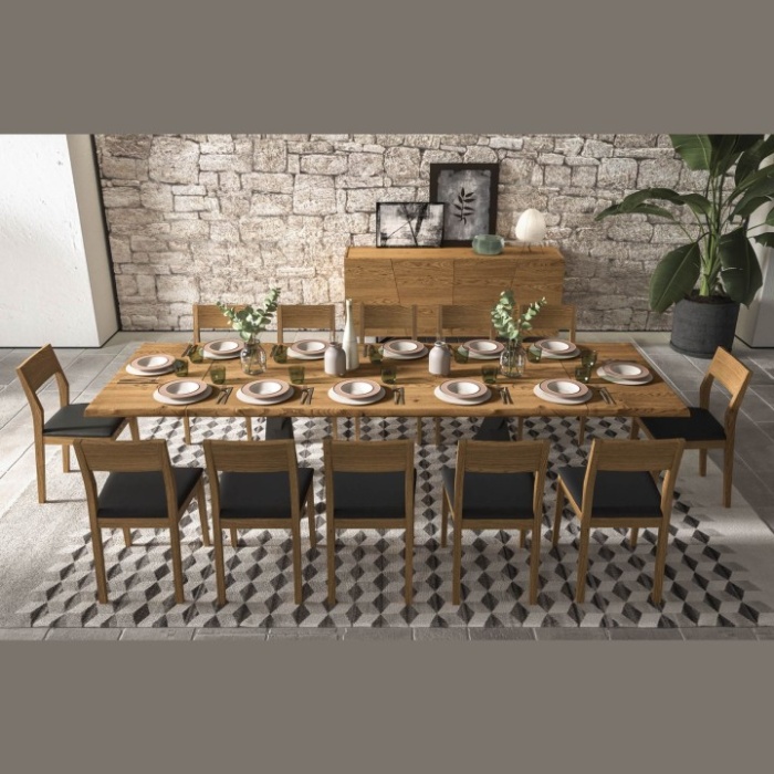 Nonostante la sua natura di tavolo fisso, il Walking è predisposto per l'inserimento di una o due prolunghe opzionali (da 50 o 60 cm), permettendo di accogliere comodamente ospiti aggiuntivi durante le occasioni conviviali. È il complemento ideale per una sala da pranzo che vuole comunicare solidità e ricercatezza; si abbina splendidamente a sedie moderne con struttura in metallo o polipropilene (come i modelli Ruby o Maya di FGF) per richiamare il design delle gambe.