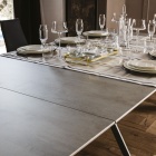 Base in acciaio verniciato goffrato a polveri epossidiche, o verniciato goffrato a polveri epossidiche e rivestito in acciaio inox satinato. Piano e prolunghe in truciolare idrofugo postformato laminato. Finiture come da campionario. Binari scorrevoli in alluminio.
