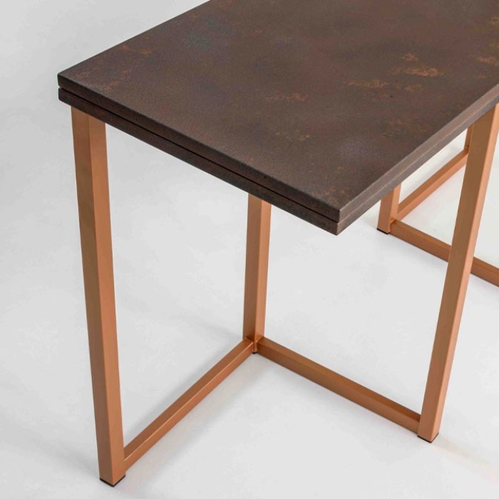 La nuova collezione Altacom di tavolini trasformabili, consolle, tavoli e sedie propone un percorso dettato dalla ricerca progettuale in cui il design entra nel processo produttivo con determinazione.